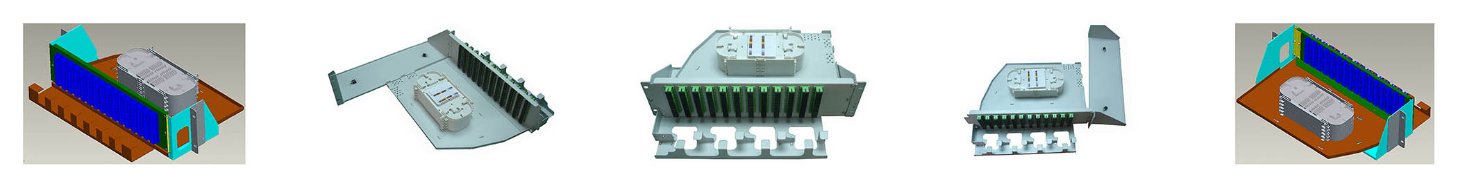 It is made of cold roll steel, splice tray can be rotated out. It could be pre-installed with various kinds of fiber optic adapters and pigtails. It is ideal for indoor fiber optic cables connection storage, distribution and management.